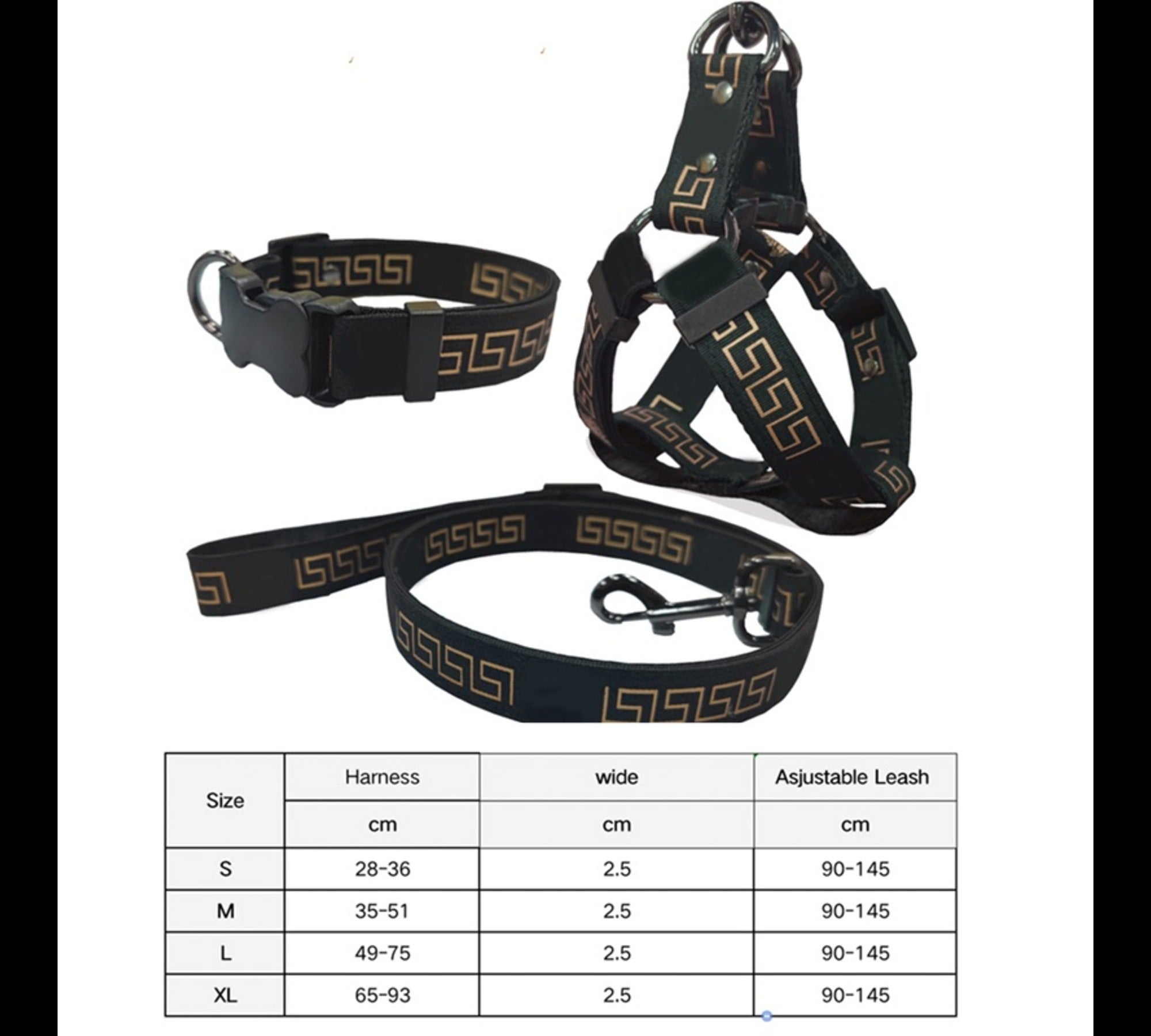 Signature Versace-inspired harness, collar & leash set