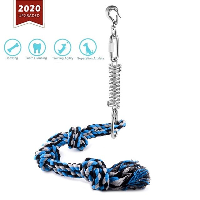 Durable Pet Dog Toys Stainless Steel Spring Pole Puppy Rope Toys Backyard Outdoor Hanging Exercise Rope Pull Tug Of War Toy