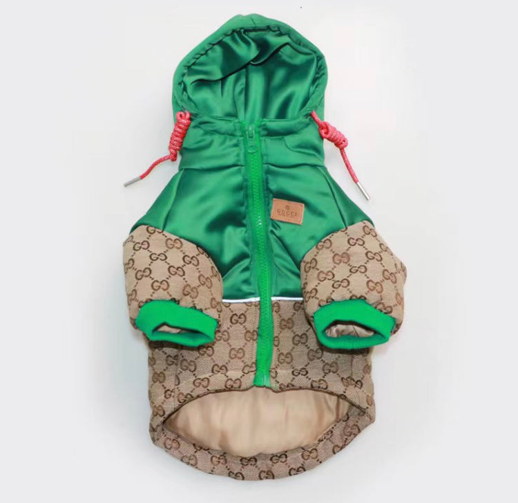 Introducing Gucci’s innovative fusion of function and luxury: The Green Pet Jacket with an Attached Leash. Crafted in a rich, Gucci-signature green, this pet coat redefines opulence with its meticulous design and utilitarian edge. Its seamless leash integration ensures your pet’s safety without compromising style, giving pet owners a dual advantage. The jacket’s premium fabric offers comfort, while the leash ensures control and convenience. Redefining pet elegance, this is the ultimate ensemble for the fashion-forward pet and owner duo. Embrace the future of pet couture with this Gucci masterpiece. Limited edition – secure yours today!