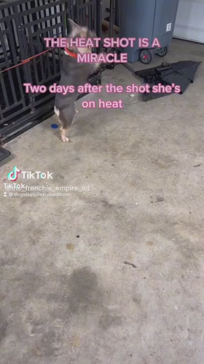 Function: Promotes estrus, enhances uterine sensitivity, and improves heat clarity for timing breedingThere is no continent we have not shipped a heat shot to. quid) brings females into heat. Each vial good to a 35 lb dog. Some females require a second dosage. These are hard cases.