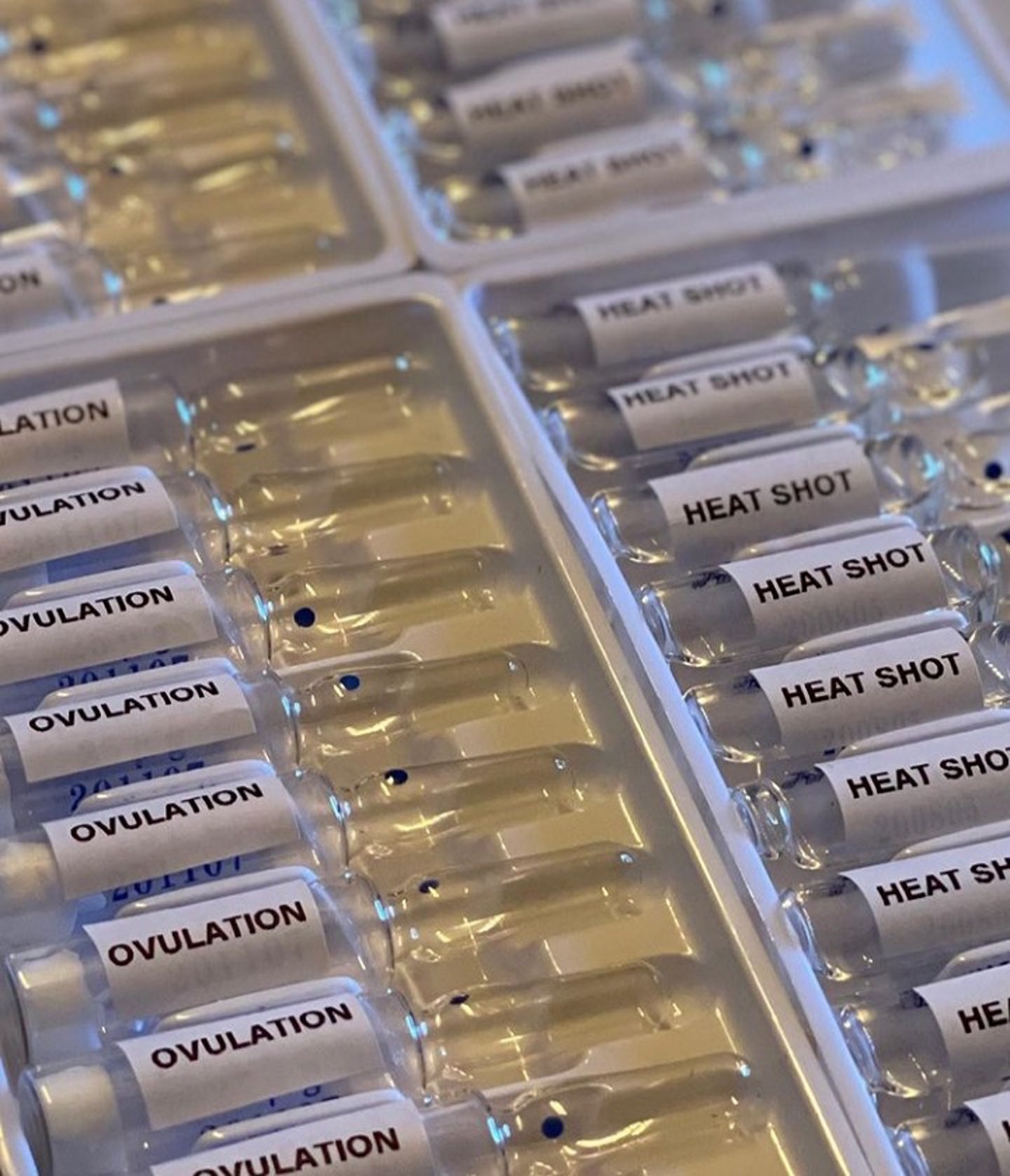 Function: Promotes estrus, enhances uterine sensitivity, and improves heat clarity for timing breeding. There is no continent we have not shipped a heat shot to besides Antarctica. Each vial good to a 40 lb dog. Some females require a second dosage. These are hard cases.