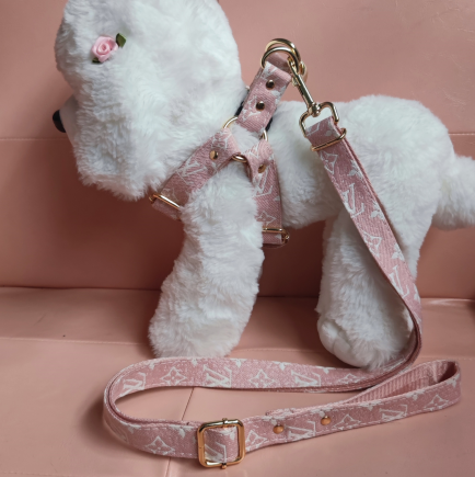 LV Designer Leather Dog Harness and Leash Sets