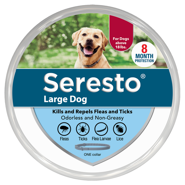 With its innovative delivery system, the Seresto 8 Month Flea & Tick Collar for Large Dogs & Puppies offers a breakthrough in tick and flea control for your precious pup. This veterinarian-recommended treatment is specifically formulated to repel and kill fleas and ticks on contact with no painful biting required. Inside the unique polymer matrix of this easy-to-use, non-greasy, odorless collar are two active ingredients: imidacloprid to control flea infestations, and flumethrin to repel and kill ticks, larvae and nymphs. These ingredients work together to provide dual-action protection against parasitic pests for up to eight months!