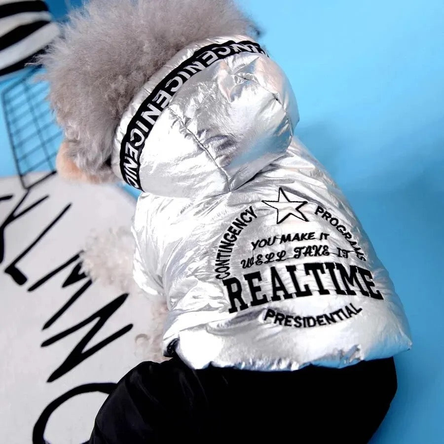 Silver Jumpsuit For Dogs Thick Pet Hoodie Parka Winter Dog Clothes Warm Four Legs Overalls Cat Dog Onesie